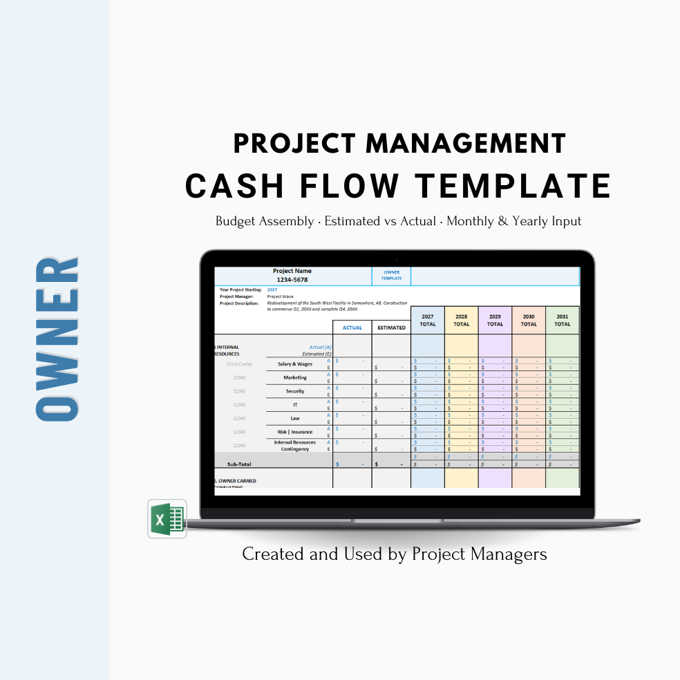 OWNER Cash Flow Management Template, Excel, Construction, Project Management, Owner Budget Format